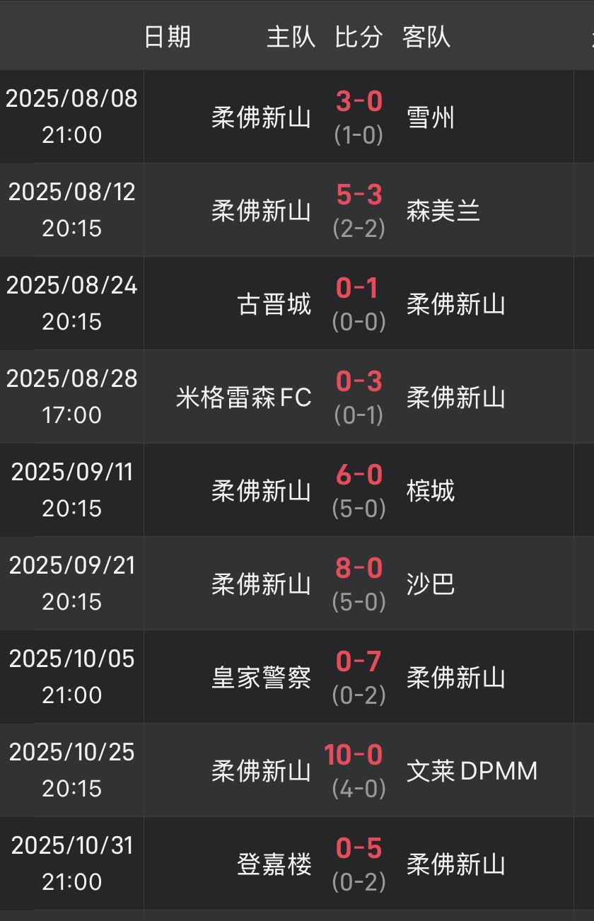 本赛季除了5-3击败森美兰,柔佛其他8场竞赛全部零封。其中,柔佛第8轮10-0狂胜文莱DPMM,上轮又在客队场5-0大胜登嘉楼。