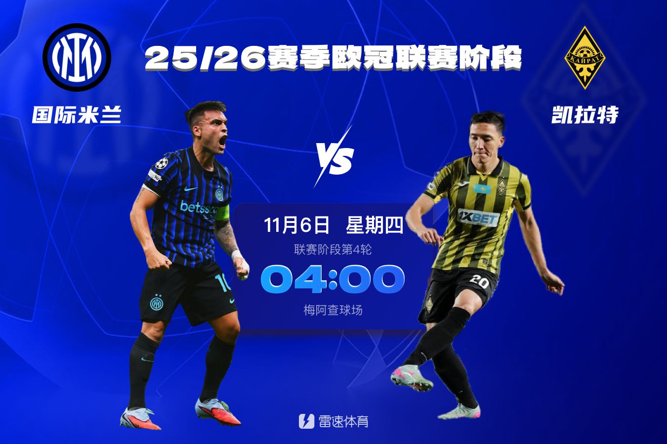6686体育11月5日讯 北京时间6日凌晨4时,欧冠联赛事阶段第四轮,国际米兰将坐镇主队场对阵哈萨克斯坦球队凯拉特。