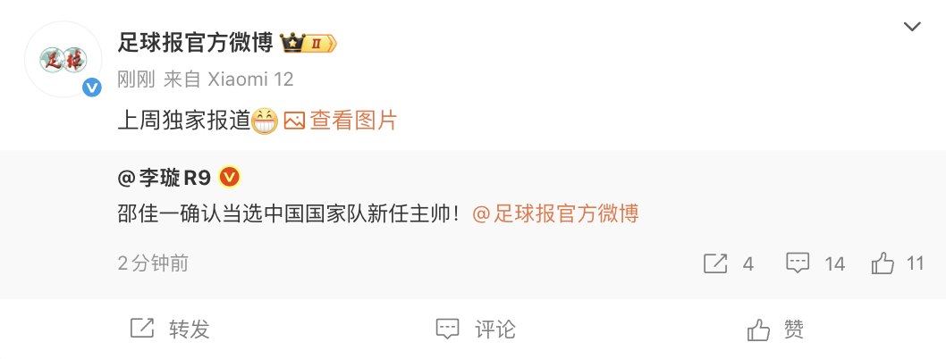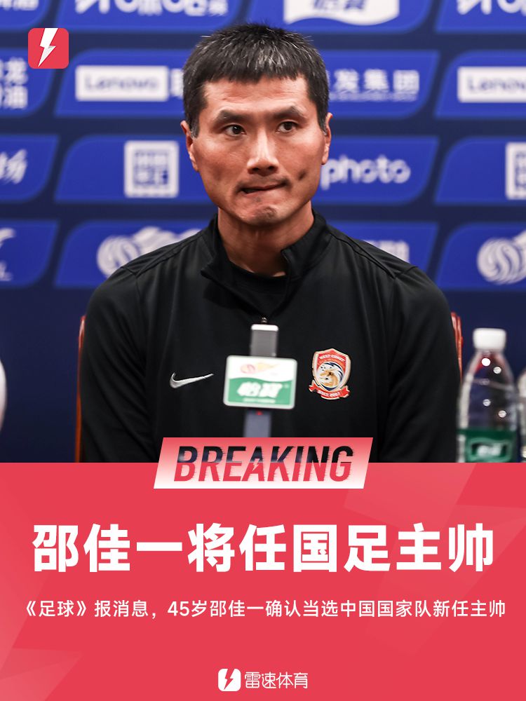 6686体育11月5日讯 据《足球报》 报道,前中国男足国脚、助教&现青岛西海岸主帅邵佳一确认当选中国男足主帅。