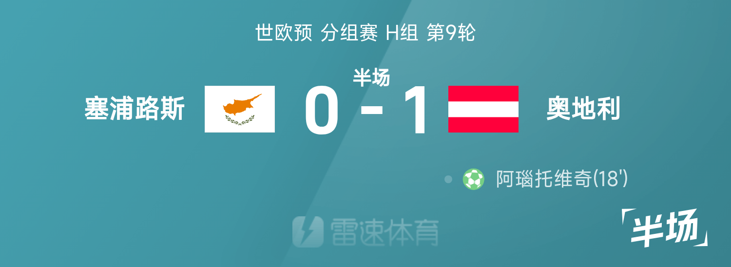 世欧预半场:阿瑙托维奇点射破门,奥地利1-0塞浦路斯