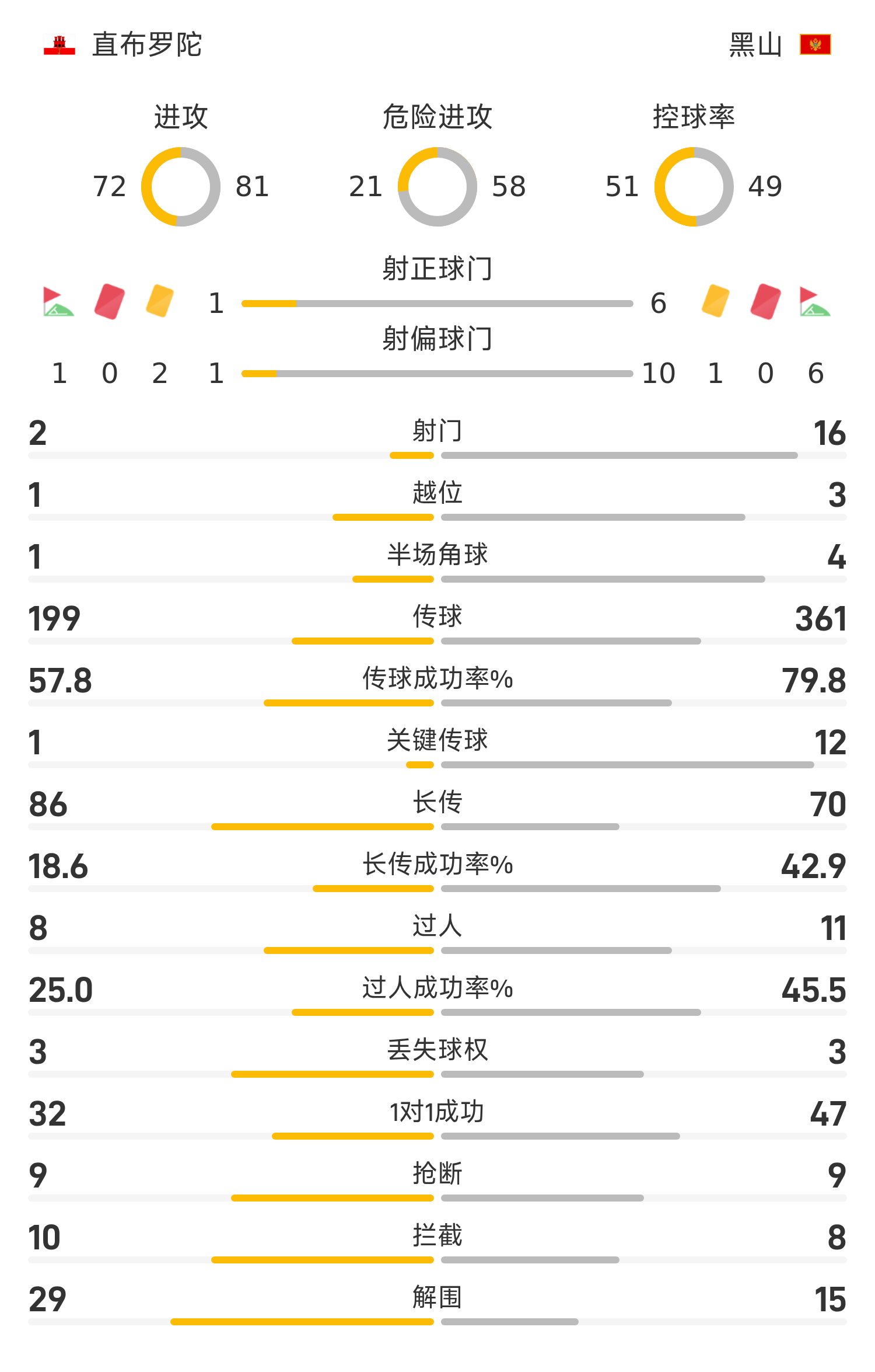 6686体育11月15日讯 世欧预分组赛L组第9轮,直布罗陀坐镇主队场迎战黑山。此役上半场,杰索普单刀破门,阿季奇主罚自由球建功扳平局赛果分,科斯托维奇点射命中。易边再战,双方均未破门。全场竞赛终结,黑山2-1直布罗陀。