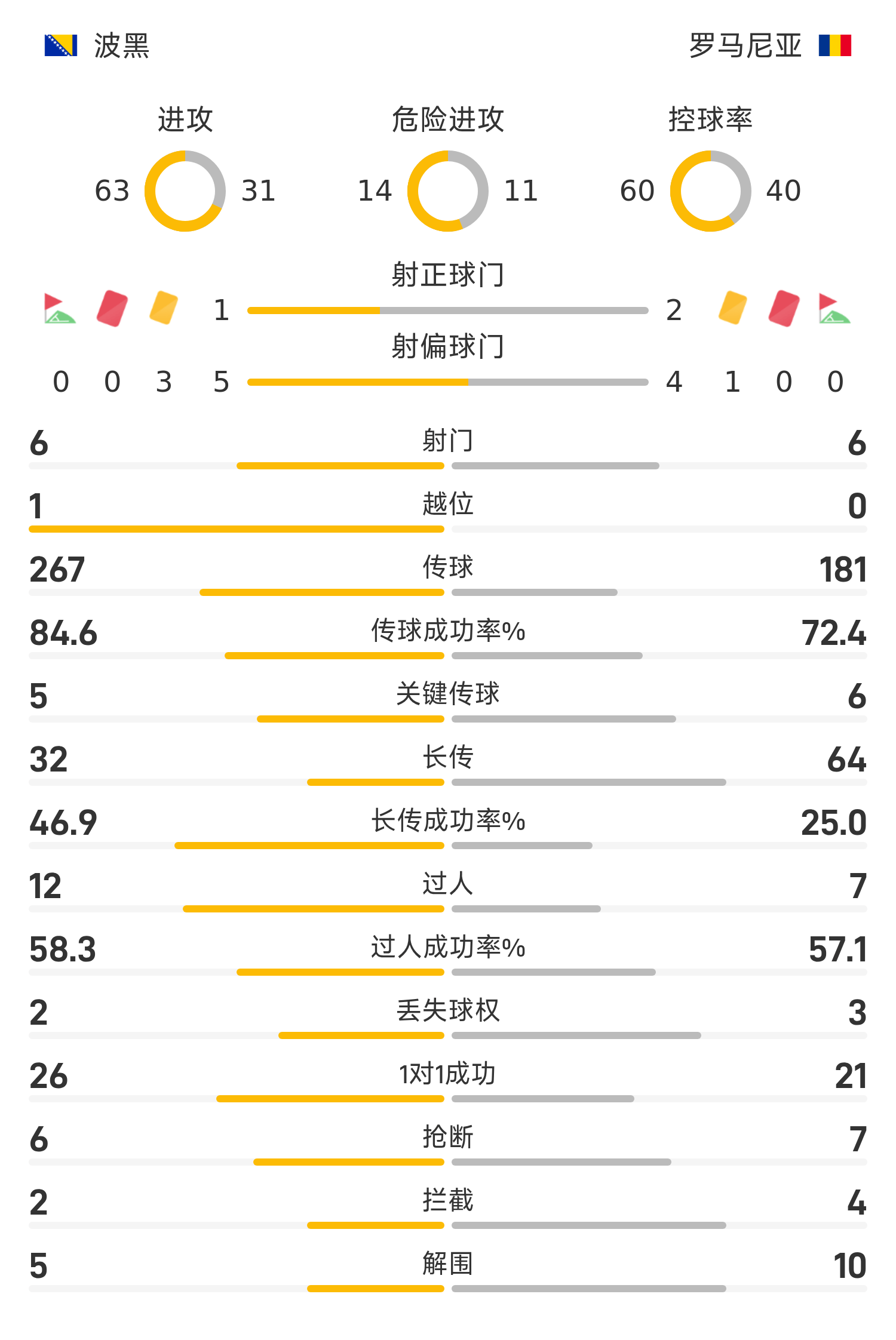 波黑首发阵容:1-瓦西尔吉、18-卡蒂奇、7-德迪奇、4-穆哈雷莫维奇、23-马利克、17-布鲁诺、15-梅米奇、6-塔希罗维奇、9-巴兹达、20-巴伊拉塔雷维奇、11-哲科