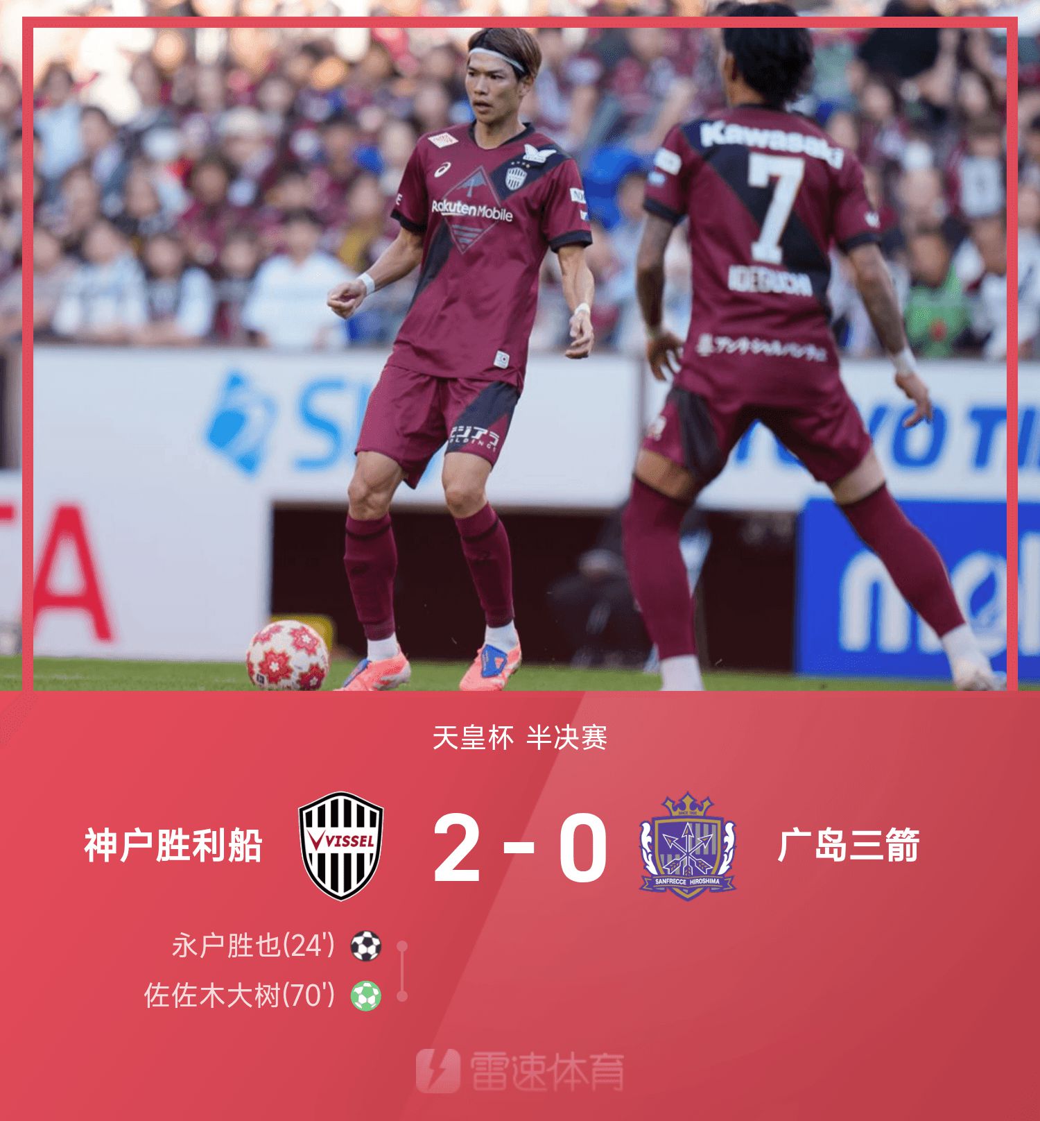 6686体育11月16日讯 25赛季天皇杯半总决赛,神户胜出局船2-0战胜广岛三箭。上半场,永户胜也外围射门破门协助神户首开纪录。易边再战,大迫勇也主罚十二码被扑出,但因广岛三箭守门员提前移动重罚,最终佐佐木大树点射命中,协助神户胜出局船锁定胜局,并连续两年打入天皇杯总决赛。
