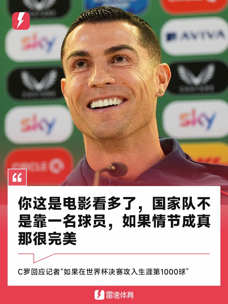 当记者问道如果能在世杯赛总决赛打入自己职业生涯的1000球,C罗直接说道:“你这是电影看多了。国家队不是靠一名球员,当然进球永远让我愉悦。我期望能参加下一届世杯赛,如果你说的电影情节能变成现实,那也很完美了。”