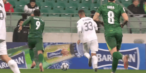 18’曹永竞右路传禁区,恩加德乌十二码点附近扫射,角度太正被没收