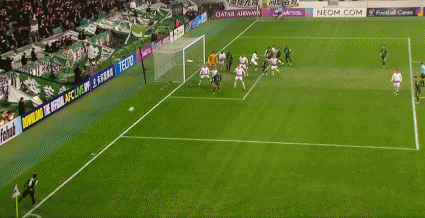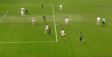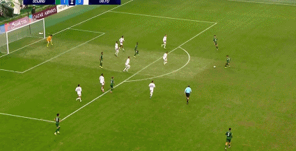 50’古加主罚边线球直接打门,随后插上再射稍稍高出目标