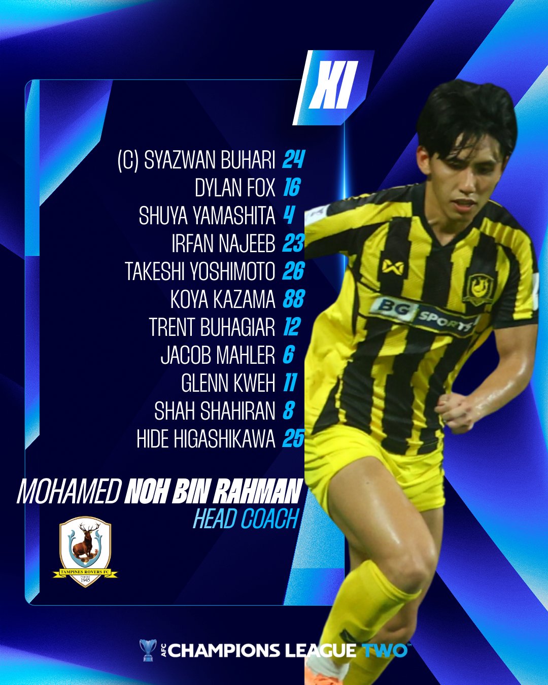 后备队员:49-纳拉维奇、5-阿德利、17-海卡尔、7-鹫见星河、74-纳乌法尔、20-阿克巴尔、10-拉姆利、13-苏巴诺、19-周俊衡、50-恩多、18-齐科斯、69-普劳泰松