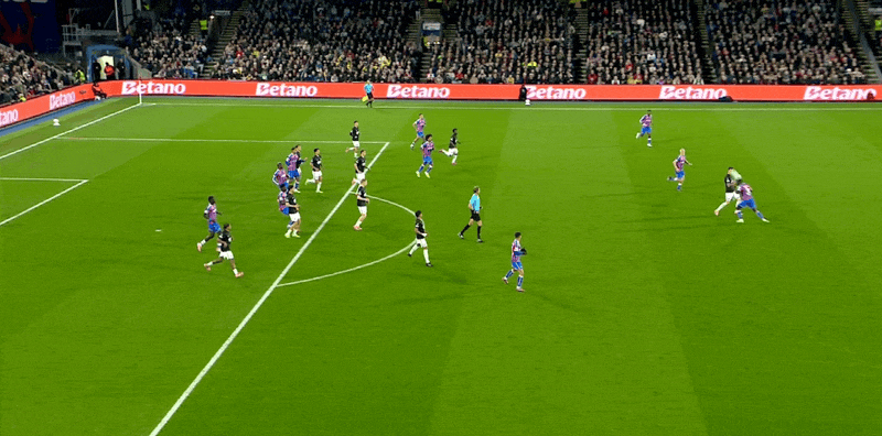 水晶宫首发阵容:1-亨德森、6-格伊、5-拉克鲁瓦、26-理查兹、19-休斯(65’20-沃顿)、8-莱尔马、7-萨尔(65’18-镰田大地)、2-穆尼奥斯(86’17-克莱因)、3-米切尔、10-皮诺(73’55-德文尼)、14-马特塔(86’12-乌切)