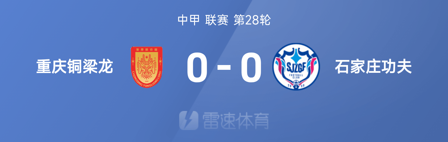 6686体育10月26日讯 25赛季中甲联赛事第28轮,重庆铜梁龙0-0互交白卷闷平石家庄功夫。