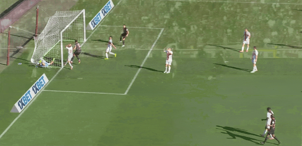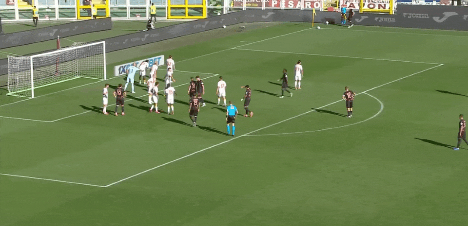 39’阿斯拉尼主罚自由球直接攻门被挡,随后莱亚利及时完成清球