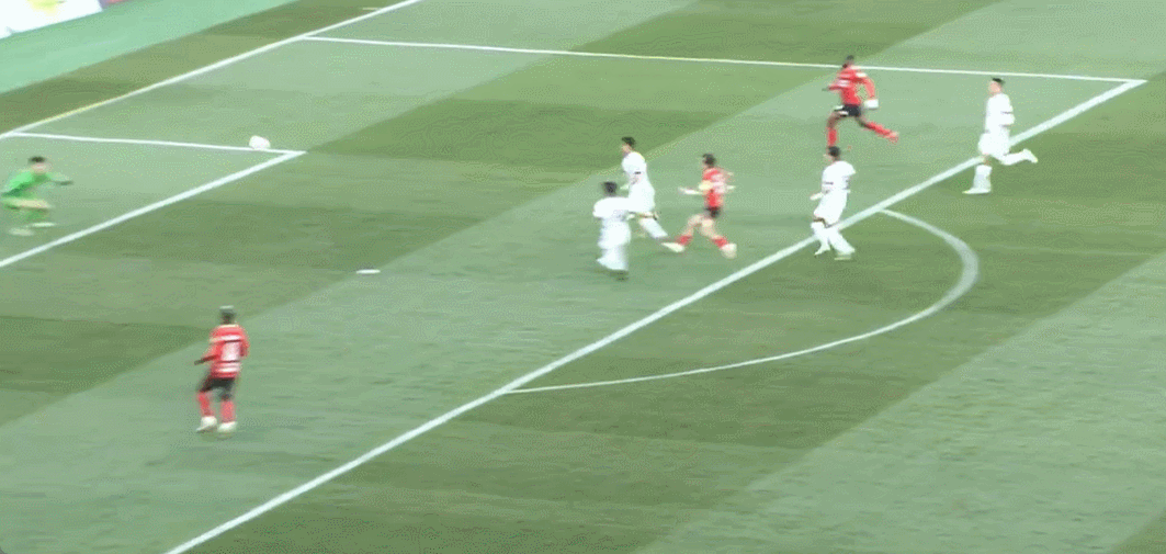 39’安以恩门前得球随即起右脚兜射,皮球滑门而过飞出端线