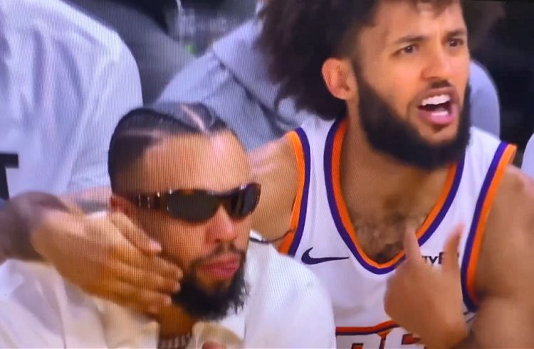 今日太阳球员狄龙·布鲁克斯持续缺阵,然而坐在板凳上的狄龙却在末节喋喋不休说着垃圾话,有趣的是太阳队友以赛亚·利弗斯的动作,利弗斯先搂住了狄龙,发现狄龙持续口吐芬芳后利弗斯捂住了狄龙的嘴巴,并向裁判员表示是自己在讲话。