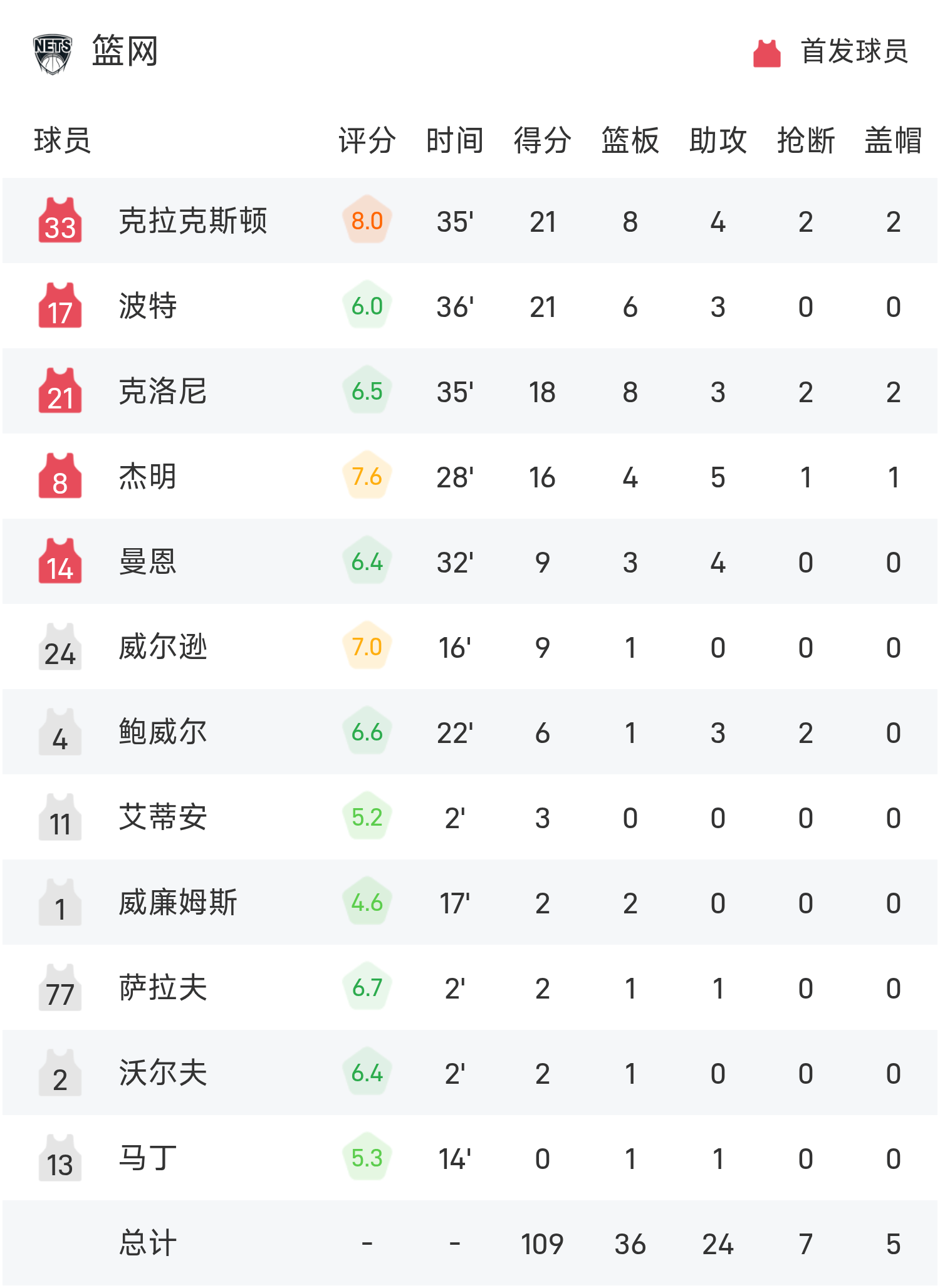 双方全场战罢,篮网109-119不敌猛龙。