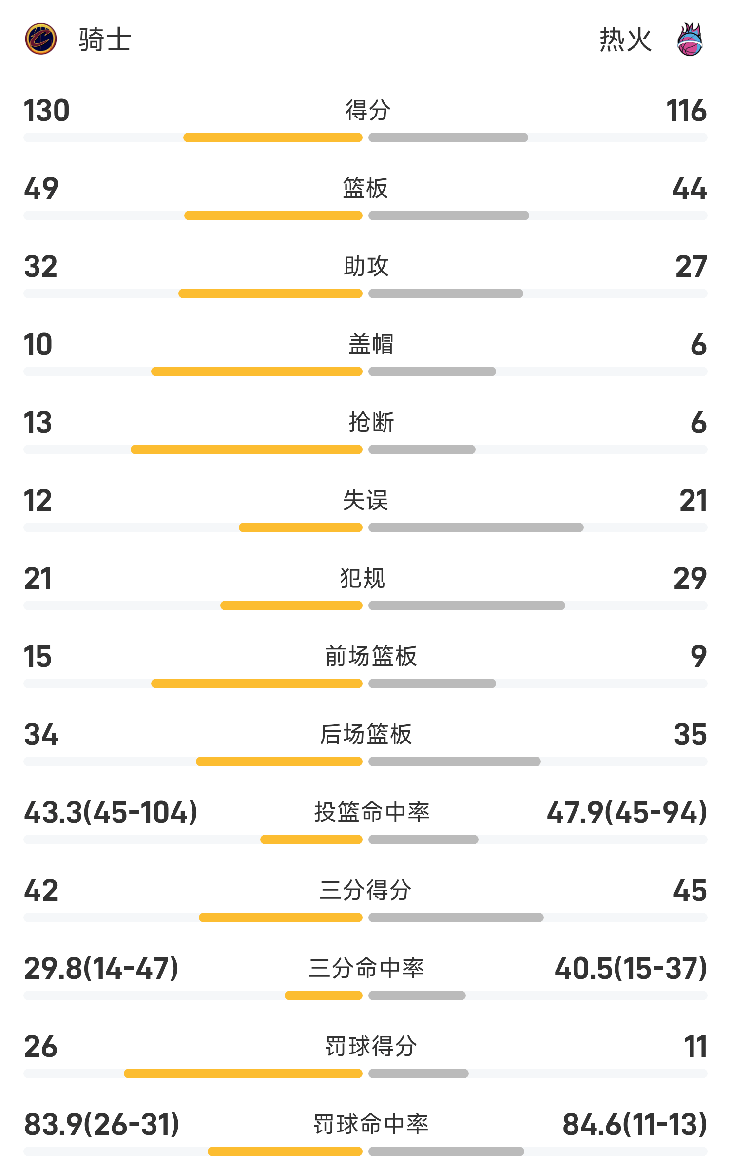 NBA战报:阿伦30分10板,骑士130-116逆转热火
