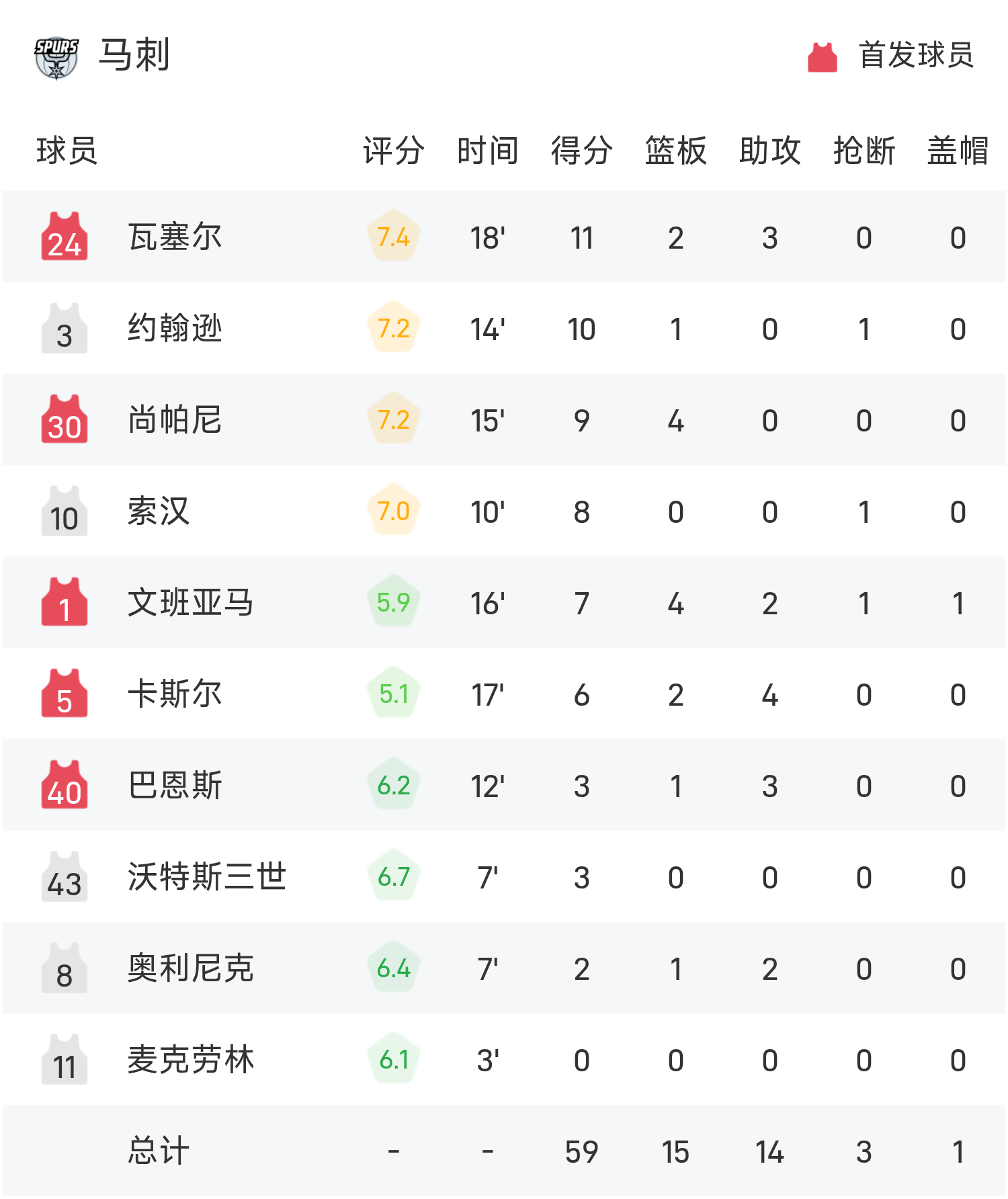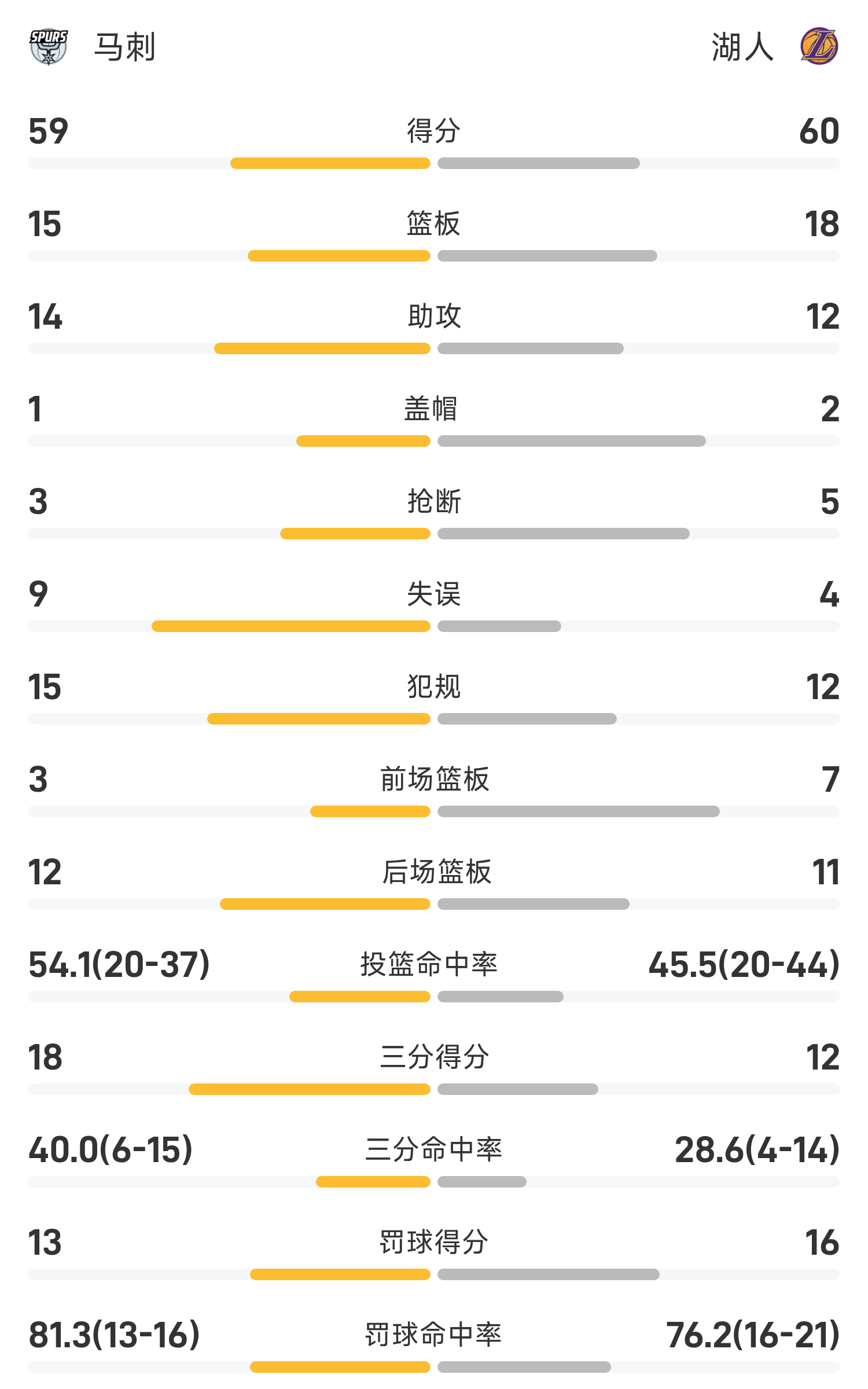 NBA半场:东契奇22分6板7助,湖人60-59马刺