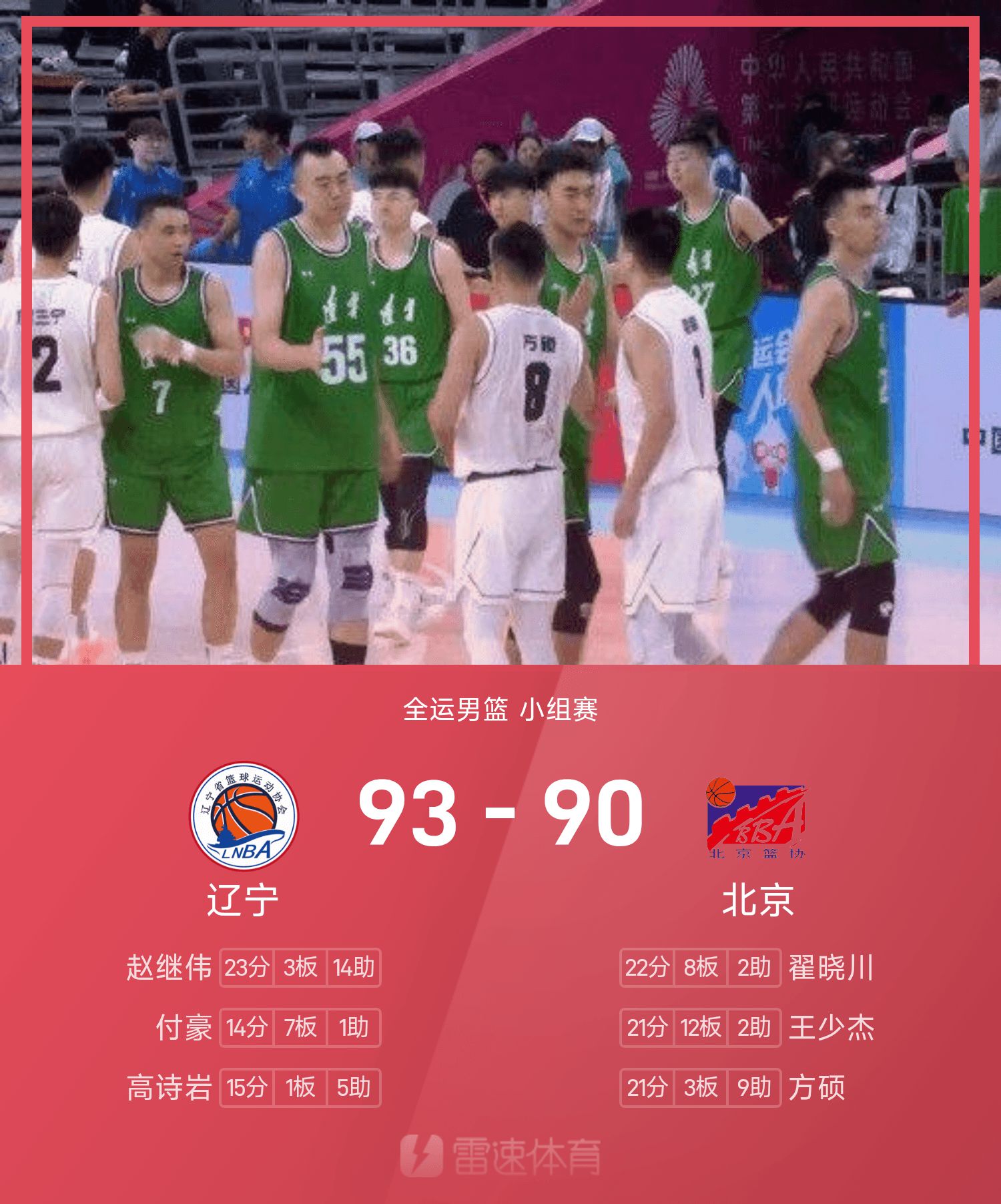 全运男篮战报:赵继伟23分14助,辽宁93-90险胜北京